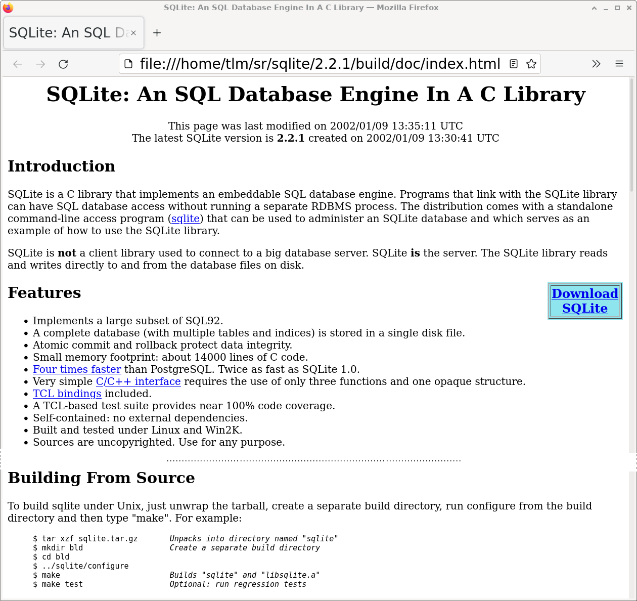 In the next section, we critique the program code and documentation of sqlite version 2.2.1 based on our experience of compiling and testing it on a modern platform.